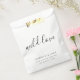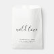 Simple, stylish "wild love" wedding day favour bag in a modern minimalist design style with a handwritten script typography in classic black and white written in an informal casual style. The text can easily be personalised for a unique one of a kind design for your special day.