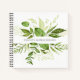 Elegant botanical logo notebook design features your name and/or business name framed by a border of lush watercolor greenery and leaves in shades of fern and forest green. Coordinates with our Wild Meadow collection of stationery, invitations and business accessories.