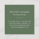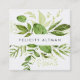Chic botanical business cards in a unique square format feature your name or company name flanked by a top and bottom border of painted watercolor botanical leaves in rich shades of green. Add your full contact information to the back in white on forest green. A unique and elegant choice for landscape designers, landscape architects, florists and green businesses.