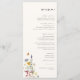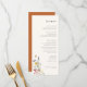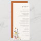 Elegant Watercolor Wildflower Floral Arrangement, wedding menu. Features, black typography on soft beige and coordinating solid terra-cotta orange colour backing.