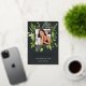 Our Wild Meadow graduation announcement frames a square photo of your graduate with an elegant square border of lush watercolor foliage in fresh shades of spring green, with real gold foil trim on a rich charcoal background. Personalise with your graduate's name, school, and graduation year beneath. Add a personal message to the back, along with an additional photo.