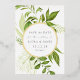 Our Wild Meadow save the date card surrounds your wedding details with a circular border of vibrant watercolor foliage in soft shades of spring green, trimmed with gold foil A modern yet organic choice for spring or summer weddings featuring intricately painted botanical elements.