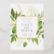 Our Wild Meadow wedding save the date frames your wedding details with an elegant square border of lush watercolor foliage in spring shades of moss and sage green, with real gold foil trim on a crisp white background. A modern and elegant take on the botanical trend for spring or summer weddings in fresh greens.