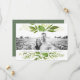 Modern green botanical save the date card features a top and bottom border of lush watercolor greenery in shades of forest and fern green, framing your favourite engagement photo. Personalise with your names, wedding date and location using the template fields. Designed to coordinate with our Wild Meadow invitation and stationery collection.