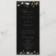 This wild multicolor floral black wedding program is perfect for a rustic wedding. The design features watercolor pink, blush, purple, navy and white elegant flowers with emerald green leaves in a dark background.