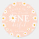 Wild One 1st Birthday Party Boho Retro Peach Daisy Classic Round Sticker
