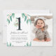 Modern and Clean Design, He's a Wild One with Botanical Watercolor Leaves and Photo Child's 1st Birthday Party Invitation with Blue Back of Card.