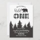 Our little Bear is a Wild One! Wilderness, Bears and Buffalo Plaid first birthday invite.