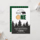 Wild One Bear Green Buffalo Plaid First Birthday Invitation