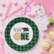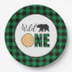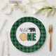 Wild One Bear green Buffalo Plaid First Birthday Paper Plate