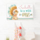 Girls wild one first birthday banner with cute blonde hair baby girl holding a dream catcher and wearing a Native American Indian outfit on a pastel Southwest Aztec Indian design background. You can add the text of your choice personalise this adorable boho tribal birthday party banner for your event.