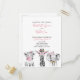 Your little baby is turning one! Invite your special guests with this adorable invitation postcard featuring hand drawn wild party animals in black and white. Baby's name, "wild One" and the date are in matching pink hand lettered script typography, and personalised in a chic modern black sans serif. Copyright Elegant Invites, all rights reserved.