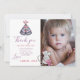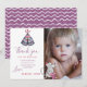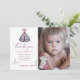 Wild One boy first birthday party thank you photo card featuring a funny mouse beating the drum and a watercolor tent in purple, navy, and pink shades.+++++++++++ Perfect to thank your guests for celebrating with you your boy's birthday! ++++++++++++ Easy to personalise with your details