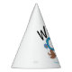 A wild one party animals paper hat in blue with balloons. Use our template to edit the party details.