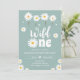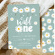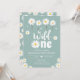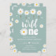 Wild One Daisy Boho Dusty Blue Girl First Birthday Invitation