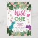 Wild One Dino Party Girl Pink Dinosaur Birthday Invitation
