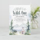 Woods, mountains, tent, lake... wilderness inspired first birthday party invitation "Adventure Awaits"