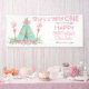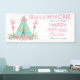 Girls first Birthday party banner wild one first birthday banner with pretty teal blue mint teepee and balloons. You can add the text of your choice personalise this adorable tepee tribal birthday party banner for your event.