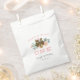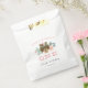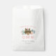 Adorable favour bags for your wild one's first birthday party feature a sweet rosy cheeked baby bear illustration flanked by pastel peach and mint flowers. "She's a wild one" appears in peach lettering. Personalise with the birthday girl's name and party date.