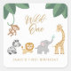 Celebrate your darling's very first birthday with these oh so cute baby jungle animals. "Wild One" in gold script with jungle leaves is perfect for a modern boy or girl's first birthday!