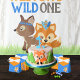 Wild One Forest Fox Orange & Royal Blue Treat Favour Boxes. Perfect addition for any first birthday but you can also edit the text for a baby shower! Part of our "Wild One" / "One Happy Camper" collection.