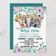Wild One Giraffe zebra jungle 1st Animals Birthday Invitation