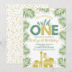 Wild One Green Gold Safari Animals 1st Birthday Invitation