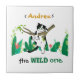 Wild One Greenery Safari Kitty Cat Kids Birthday Tile