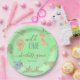 Wild One Jungle Friends Blue Brown First Birthday Paper Plate