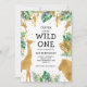 Wild One Jungle Safari 1st Birthday Gold Green Invitation