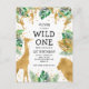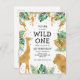 Wild One Jungle Safari 1st Birthday Gold Green Invitation Postcard