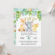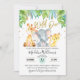 Sweet boys watercolor jungle animals baby shower invitation featuring three cute watercolor safari animals, foliage, faux gold foil calligraphy heading and gold dots. This safari themed baby shower design is a cute way to set the scene for an upcoming baby boy's baby shower.