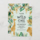 Wild One Jungle Safari Green Gold 1st Birthday Invitation