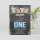 A safari themed 1st birthday party invitation to celebrate your little Wild One. Cute australian bush animals, kangaroo's and koala's on a chalkboard background with fun blue Gingham letters number ONE. Easy to personalise 1st birthday party invitation template. For more advanced personalisation of this design, simply select the "Personalise" button above!