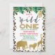 Sweet faux gold safari animals and leopard skin patterns first birthday invitation for a little girl. This girl's wild one birthday invitation features four faux gold foil safari animals, some foliage and a leopard skin pattern. This is a cute wild one themed first birthday invitation and a cute way to set the scene for your little girl's upcoming first birthday party..