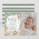 Celebrate your little wild one’s first birthday with this charming jungle-themed photo invitation! Featuring watercolor safari animals — lion, giraffe, elephant, monkey, and tiger — surrounded by tropical leaves and your baby’s adorable photo. Perfect for a wild one, safari, or jungle birthday theme. Customise with your child’s name, date, and party details for a sweet and memorable invitation.