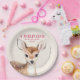Wild One Pink Spotted Fawn Deer Baby Shower Paper Plate