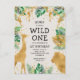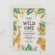 Wild One Safari 1st Birthday Green Gold Ecru Invitation Postcard