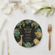 Celebrate your little wild one's first birthday with these jungle safari themed paper plates, featuring gold faux foil animals (giraffe, lion and monkeys), gold and green jungle foliage, and a sprinkling of gold confetti. Add your child's name and other custom text in gold and white on a black background.