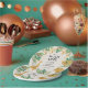 Celebrate your little wild one's first birthday with these jungle safari themed paper plates, featuring gold faux foil animals (giraffe, lion and monkeys), gold and green jungle foliage, and a sprinkling of gold confetti. Add your child's name and other custom text in black on an ecru background.