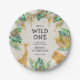 Wild One Safari 1st Birthday Party Green Ecru Paper Plate