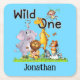 Wild One Safari Animals 1st Birthday cartoon Invit Square Paper Coaster