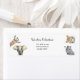 Safari Jungle baby shower invitation featuring a watercolor illustration of a giraffe, leopard, elephant and zebra. "A little wild one is on the way."
