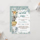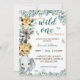 Wild One Safari Animals Sage Green Baby Shower Invitation