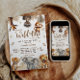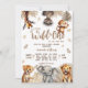 Join us for a charming boho baby boy shower with a safari theme! Our adorable invitation features playful baby animals including a monkey, giraffe, ostrich, lion, elephant, and tiger, all set against a beautiful backdrop of pampas and palm leaves. Delicate script and intricate details make this design truly one-of-a-kind.