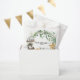 Package your thank-you gifts beautifully with this Charming Wild One favor bag design. Featuring the delightful watercolor safari animals—including the elephant, lion, and zebra—framed by lush jungle leaves, these bags maintain the cohesive theme of your event. They are perfectly sized for small treats or tokens, making them an essential and charming part of your boy baby shower celebration. Easily personalize the design to add a special thank you note for your guests.