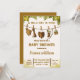 Celebrate the upcoming arrival of your little explorer with this adventurous "Wild One" baby shower invitation! Designed with earthy tones, rustic jungle leaves, and a cute tribal clothesline, this invitation perfectly sets the stage for a memorable, prehistoric-themed celebration.