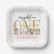 Wild One Safari Pink Glitter First Birthday Paper Plates . Perfect decoration for 1st birthday party. With customisable text. Make your own!