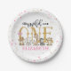 Wild One Safari Pink Glitter First Birthday Paper Plates . Perfect decoration for 1st birthday party. With customisable text. Make your own!