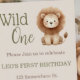Wild One Watercolor Safari Lion First Birthday Invitation